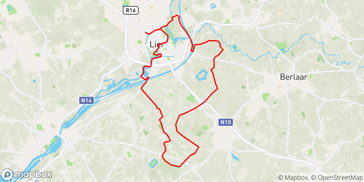 ‘Schoon Lier’, zoals Felix Timmermans het noemde, ligt aan de samenvloeiing van de Grote Nete en de Kleine Nete in het noordelijke deel van het arrondissement Mechelen. Het GR-pad 12 Amsterdam-Parijs doorkruist het historische centrum van Lier via de mooiste weg. Op de stadsvest bij het Spuienhuis staat er een prachtige wandelboom voor de GR 12. Je verlaat Lier bij Anderstad en volgt de door groen omgeven veldwegen doorheen het valleitje van de Itterbeek, die je een paar keer dwarst. De Itterbeek ontspringt in de buurt van Beerzel tussen Putte en Heist-op-den-Berg. Vanaf Koningshooikt, bekend om de autobusfabrikant Van Hool, keer je via landelijke weggetjes terug naar Lier, waar je het verlaten hoekje ‘Neerloop’ ontdekt vlak bij de Grote Nete. Ten slotte bereik je de voormalige abdij van Nazareth naast het Netekanaal, aan het einde van een prachtige dreef. Vandaar is het nog twee zeer mooie kilometers wandelen is tot bij het beginpunt.