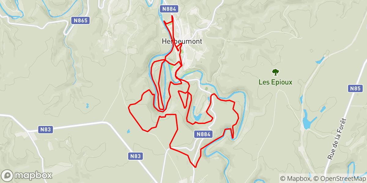 Na een warming-up op de oude tramlijn Ravel, daalt u af naar de Semois tot aan de “Moulin de Nawé”. Van daaruit volgt u steeds de Semois door het vrij technische en soms geëngageerde enkelspoor “Pierre Perin” te nemen. Ronde van het “Tombeau du Chevalier” door de Chemin du Boult met terugkeer via het technische enkelspoor van de “crêtes”. Als u door de "Moulin Willaime" komt, volgt u de N884 tot aan de brug. Sla direct na de brug rechtsaf en ga de zeer mooie singletrack op die je naar een prachtig uitzichtpunt brengt met uitzicht op de brug, het viaduct en de ingang van het dorp.