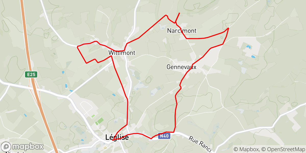 Landelijke wandeling door de dorpen van de oude gemeente Léglise via onder meer Narcimont en het oude kerkhof van het klooster. On deze wandeling met het Bureau voor Toerisme als vetrekpunt ontdek je de rurale landschappen van de dorpen die deel uit maken van de oude gemeente Léglise met haar historisch habitat dat hoofdzakelijk uit boerderijen bestond. Het klooster van Léglise wordt je baken tijdens de hele tocht. In het gehucht Xaimont, de eerste stap, ontdek je de oude molen en de moderne waterzuiveringsinstallaties. Vervolgens gaat u door Wittimont om Narcimont te bereiken. Verlaat even de weg en stap naar het oude kerkhof van het klooster over, om de sfeer van gebed en meditatie in u op te nemen. Deze plek behoorde tot het klooster van Wittimont, maar zoals je kunt zien, werden de parochianen van Léglise tijdens de Eerste Wereldoorlog begraven in het privékerkhof. Gennevaux zal u nog enkele oudere hoeves vooral uit de 18de eeuw en zijn neoklassieke kapel van het einde van de 19de eeuw voorstellen. Uiteindelijk op de terugweg nadat u de site van de necropool van Gohimont, opgraafplaats tussen 1794 en 1984, bent langsgelopen en dat u in de schaduw van een beukenhaag hebt geslenterd, laat u zich verassen door de “Chapelle de l’Espérance” met haar muurschildering van broeder Joseph du Bua en zijn leerling Alain Brahy.
