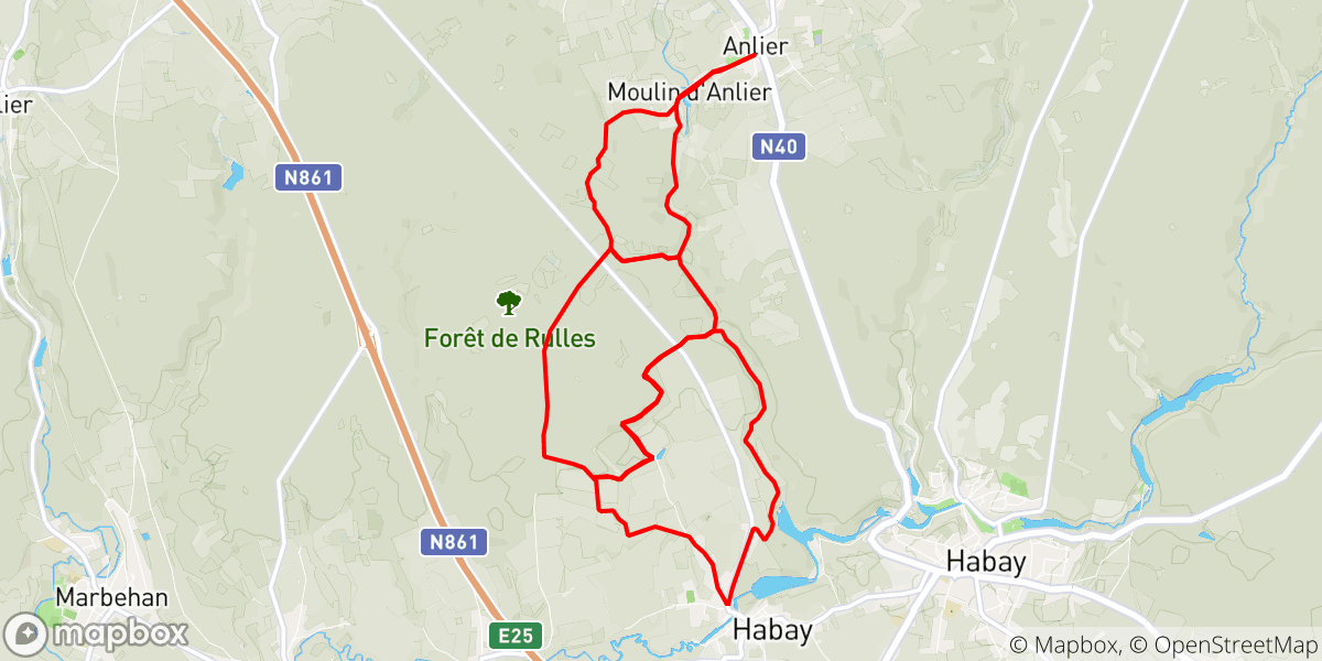 Met als vertrekpunt de kerk van Anlier, biedt deze tocht u drie mogelijke parcours. Doorheen het Woud van Anlier in de richting van het meer van Harnussiau bereikt u het dorp van Habay-la-Vieille, vervolgens volgt u de meren van de Trapperie om uw circuit te beëindigen met het volgen van de beek l’Anlier. N°52 op de kaart "120 ontdekkingswaardige wandelingen" van het Grote Woud van Anlier.