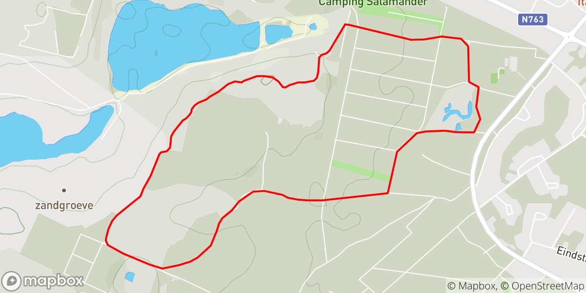 De blauwe wandeling leidt je naar het hoogste natuurlijke punt van het Nationaal Park: een panoramapunt waar je prachtige vergezichten hebt. Je moet wel even flink klimmen. Daarna wandel je verder door de heide en heb je een mooi zicht op de voormalige zand- en grindgroeve.